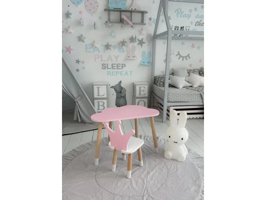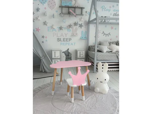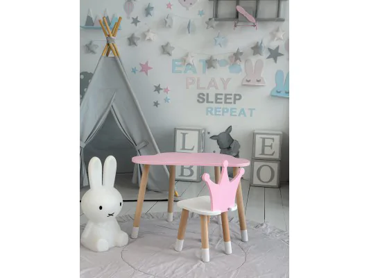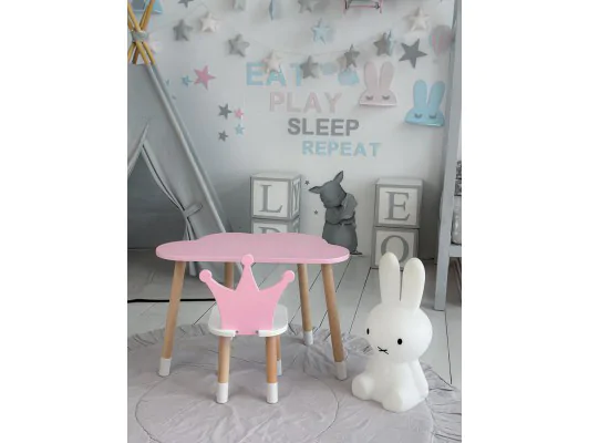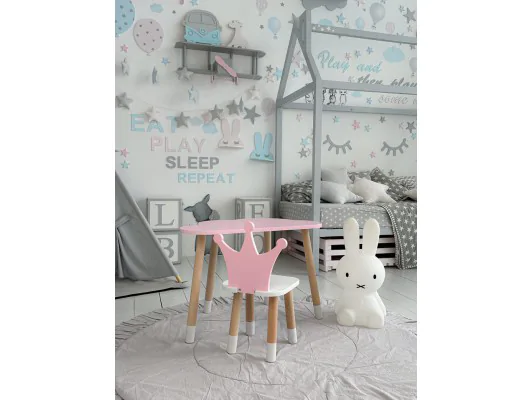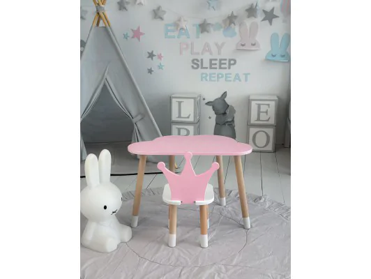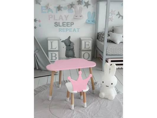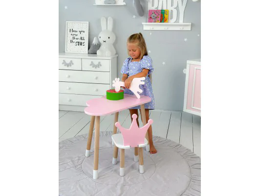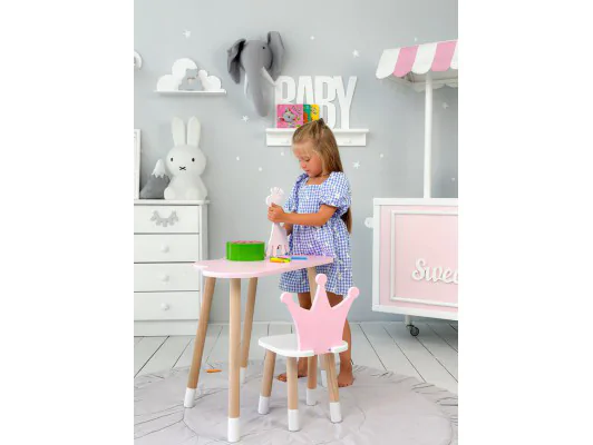 Zestaw dla dziecka Korona z różowym stoliczkiem chmurka i krzesełkiem z oparciem w kształcie korony w kolorze różowym