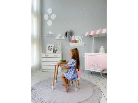 Nasz stolik dla dzieci to idealna przestrzeń do zabawy, rysowania, malowania i nauki. Dzięki solidnej konstrukcji jest stabilny i trwały, a zaokrąglone rogi zwiększają bezpieczeństwo dziecka podczas użytkowania. Bezpieczne, nietoksyczne materiały użyte do produkcji spełniają normy bezpieczeństwa, zapewniając spokój rodzicom. Powierzchnia stoliczka jest łatwa do utrzymania w czystości, co sprawia, że zestaw jest idealny do codziennego użytku.