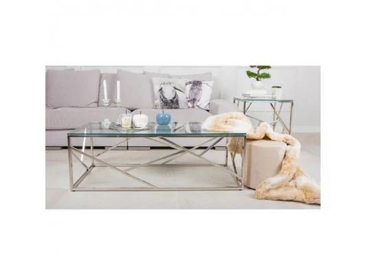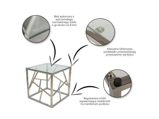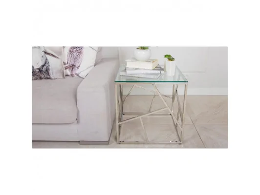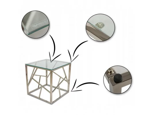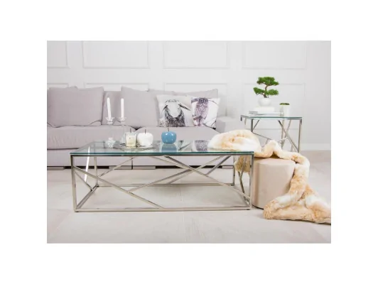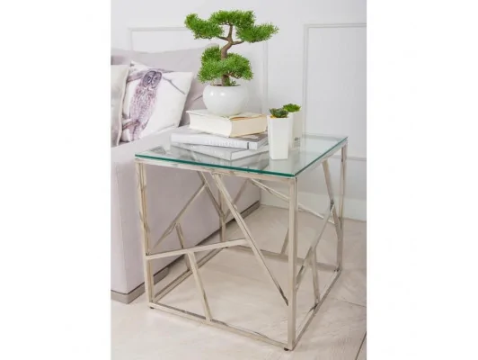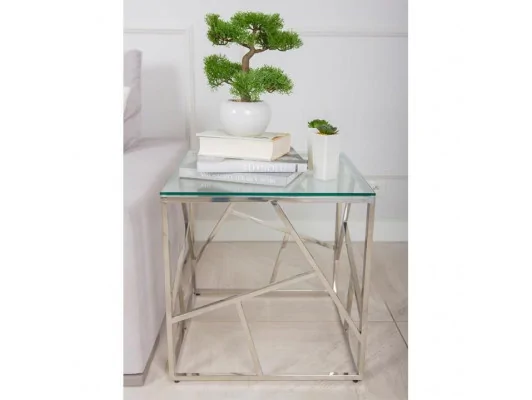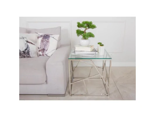 Stoliczek kawowy Lasima Srebrny 55 cm w stylu glamour