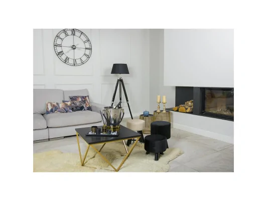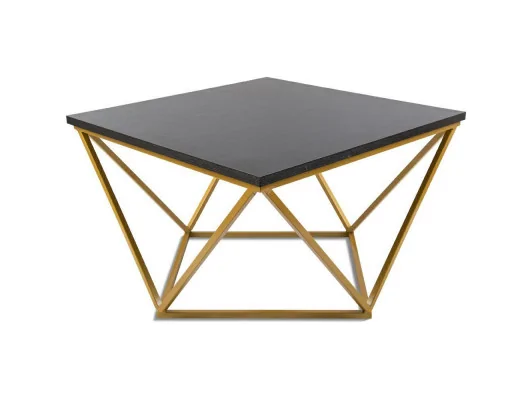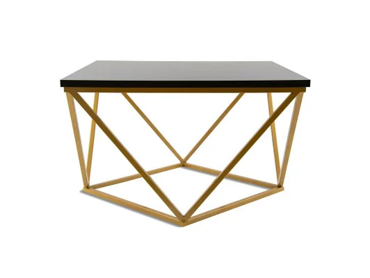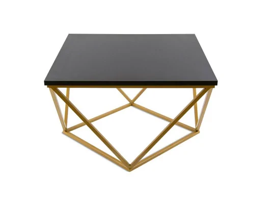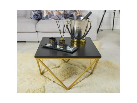 Konstrukcja lakierowana na złoto, blat wykonany z płyty MDF w kolorze czarnym, wysokość 39 cm, wymiary blatu 62x62 cm