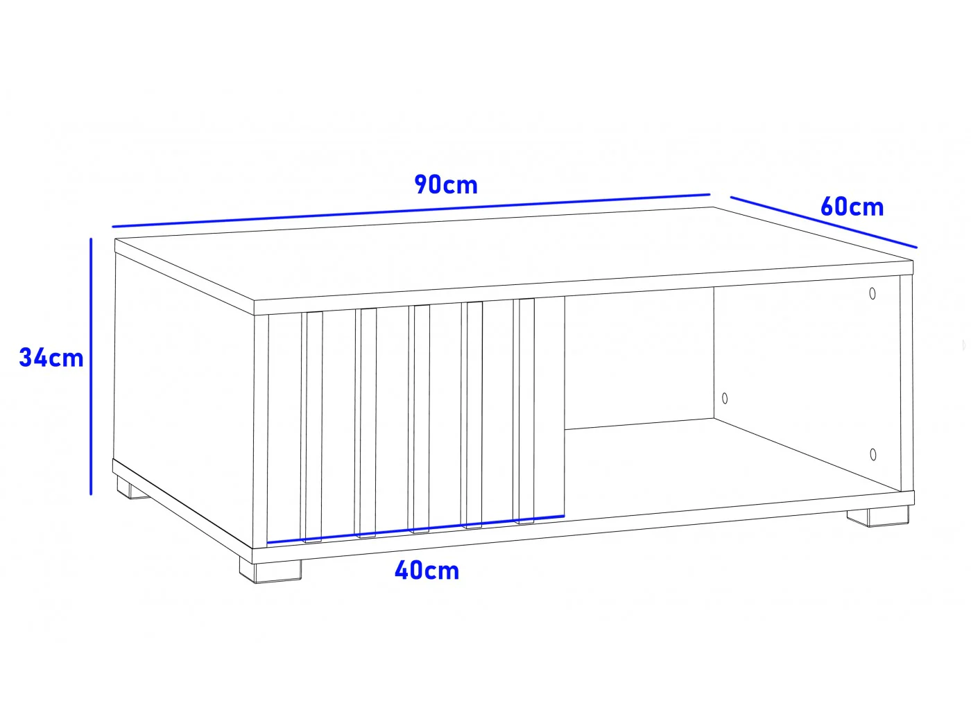 Kompaktowe wymiary 90 × 60 × 34 cm sprawiają, że stolik jest wygodny, a jednocześnie nie zajmuje dużo miejsca. Wykonany z laminowanej płyty meblowej 18 mm z obrzeżem ABS, zapewnia stabilność, trwałość i odporność na codzienne użytkowanie. Montaż jest prosty – w zestawie znajduje się komplet elementów i czytelna instrukcja.