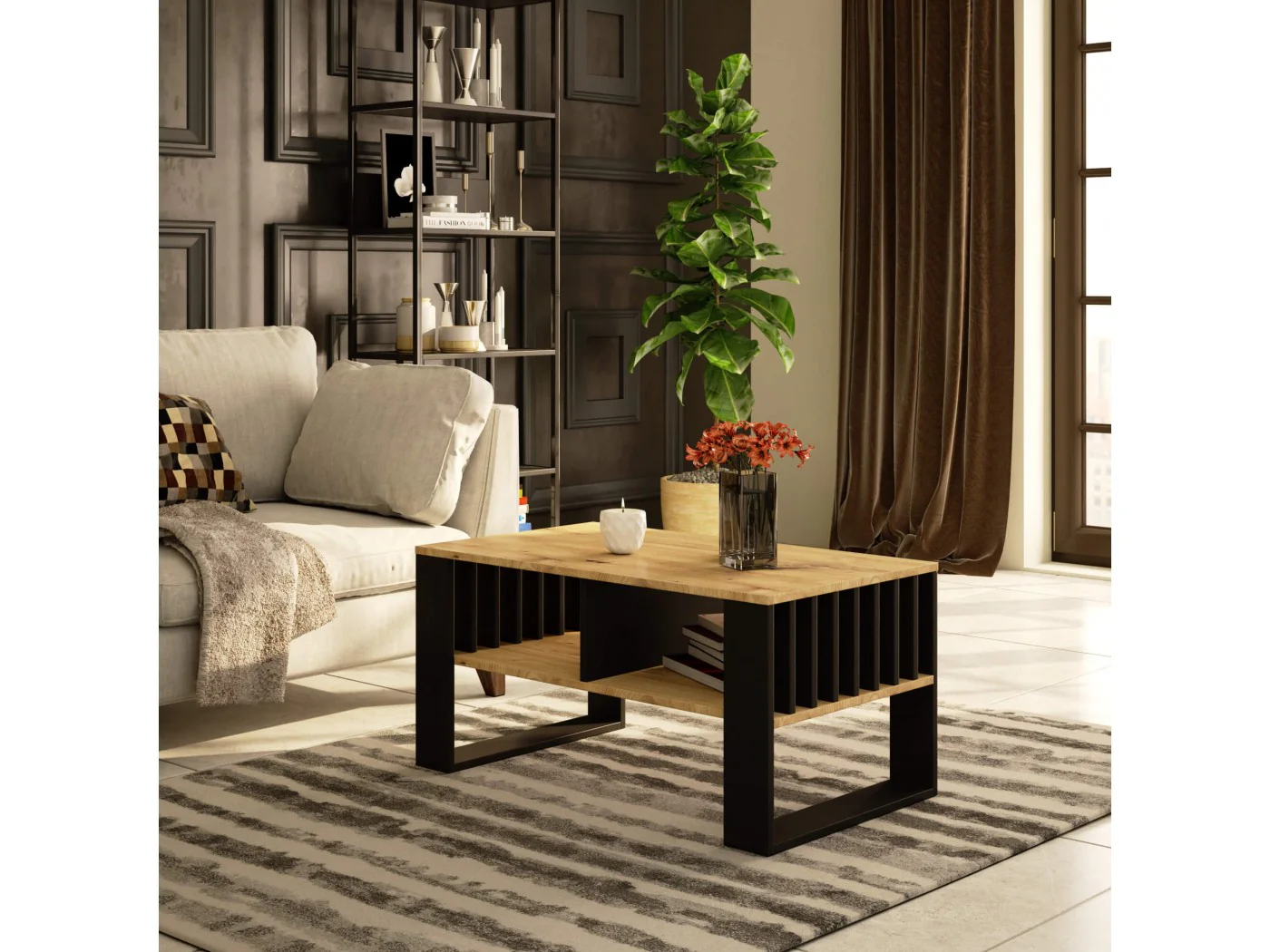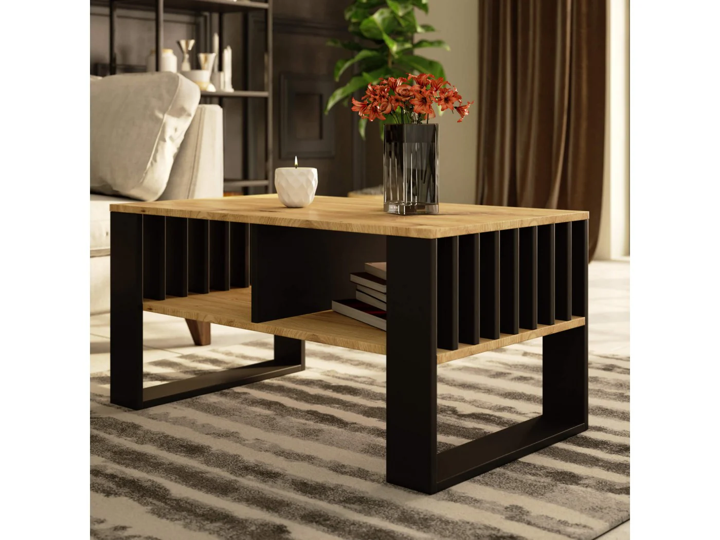 STOLIK KAWOWY ROCKFORD DĄB ARTISAN / CZARNY