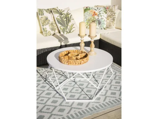 Z czego zrobiony jest ten stolik? Podstawę stworzy sześcioboczna bryła, wykonana z metalu i pokryta lakierem. Blat natomiast zrobiony jest z płyty meblowej, materiału odpornego na ścieranie, zarysowania i czynniki zewnętrzne.