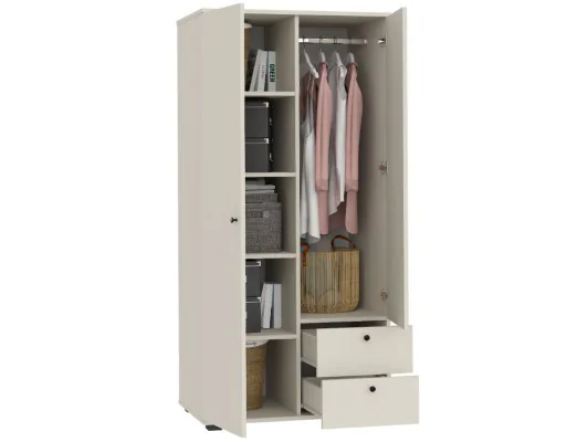 Szafa dwudrzwiowa kaszmir z 2 szufladami półkami drążkiem – Arizona SZ85