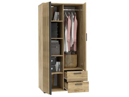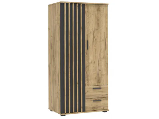 Szafa dwudrzwiowa z lamelami LOFT 2 szuflady półki drążek dąb craft – Montana SZ85