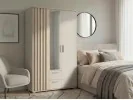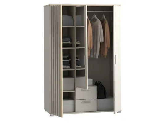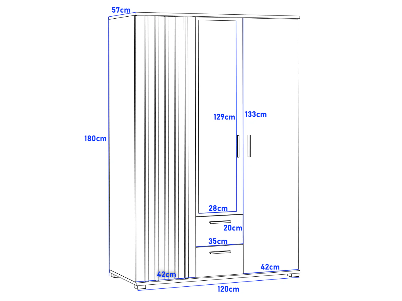 Nowoczesna szafa garderoba z lustrem, lamelami, drążkiem i szufladami doskonale odnajdzie się w sypialni, garderobie, przedpokoju, pokoju młodzieżowym lub gościnnym, zapewniając wygodne i uporządkowane przechowywanie ubrań w każdej przestrzeni.