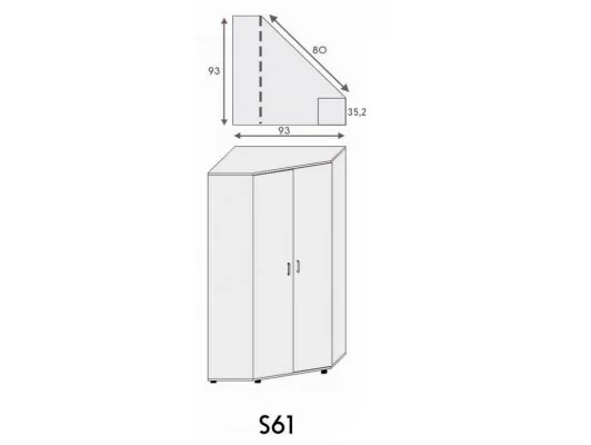 Szafa na ubrania narożna z podwójnymi drzwiami S61