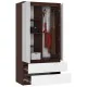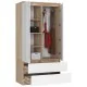 Szafa S 90 cm z dwoma drzwiami, dwoma szufladami oraz dwoma lustrami w kolorze dąb artisan oraz białym to idealny wybór do salonu, sypialni czy pokoju dziennego. Przypadnie ona go gustu osobom, które cenią sobie estetyczne oraz funkcjonalne meble. Szafa cechuje się prostotą formy, wyróżnia ją za to połączenie dwóch kolorów, co daje ciekawy efekt wizualny.