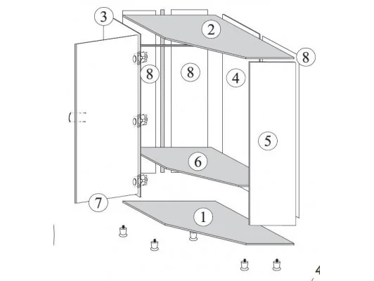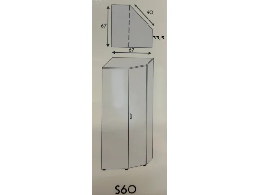 Szafa ubraniowa S60 jest to szafa narożna. Posiada drążek na wieszaki ubraniowe, oraz dwie półki w środku, umieszczone w dolnej części.