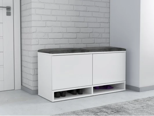 Szafka buty siedzisko biała KANSAS panele wieszak siedzisko szare, granatowe, zieleń butelkowa