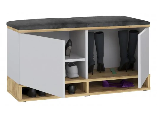 Szafka na buty z siedziskiem Nevada 100 Biała siedzisko szare, granatowe, zieleń butelkowa
