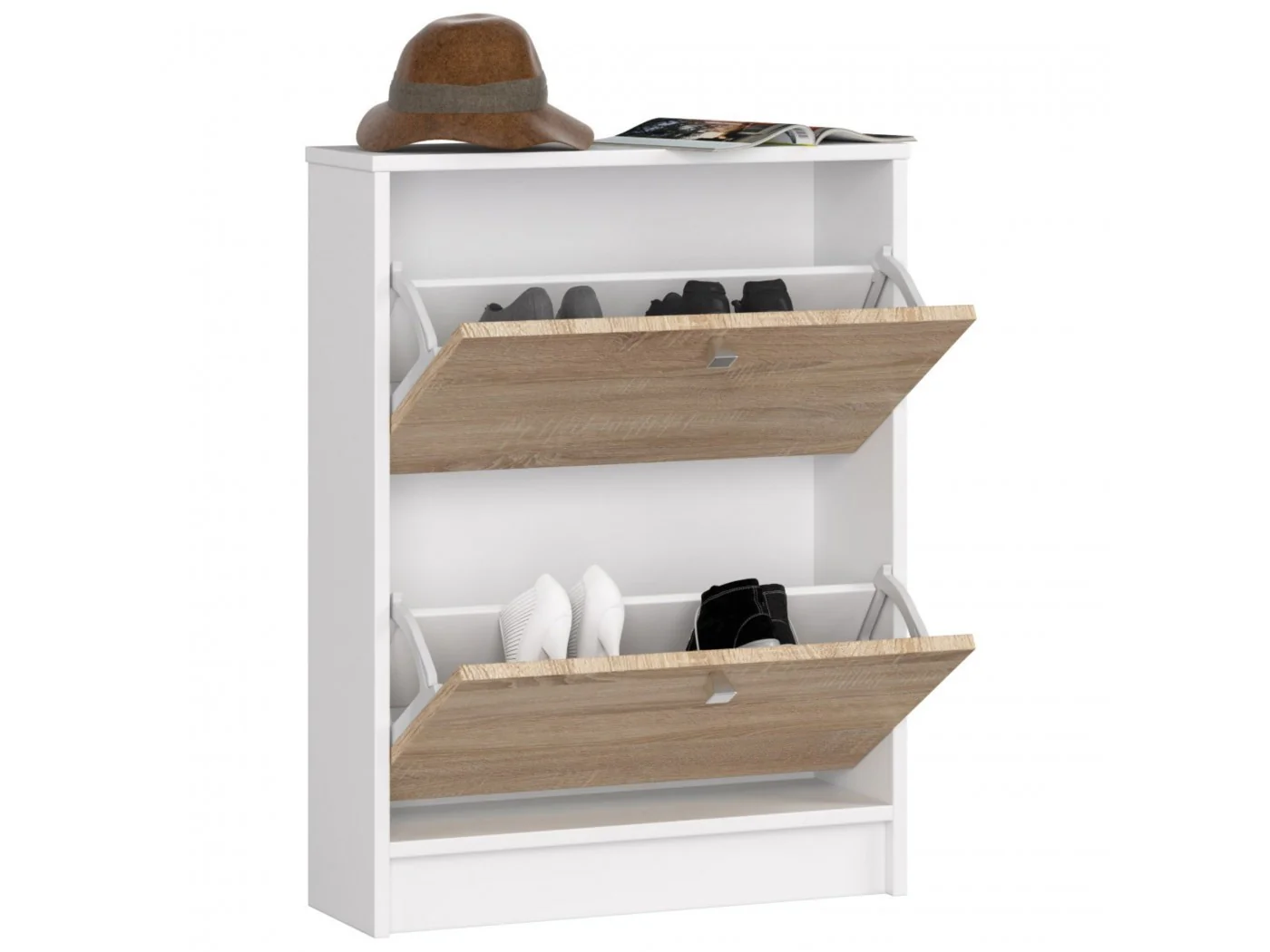SZAFKA NA BUTY 2 UCHYLNA BIAŁA / DĄB SONOMA