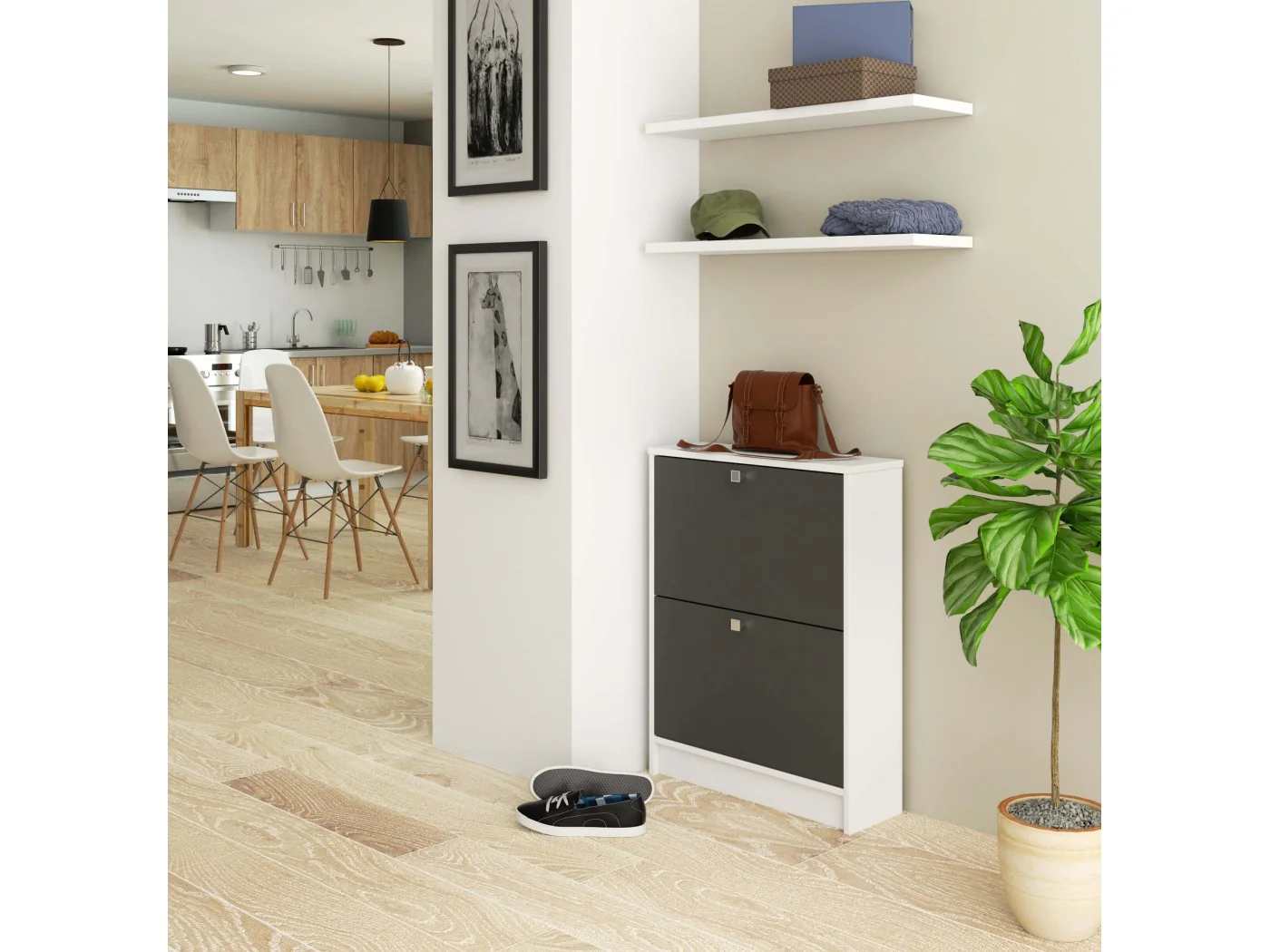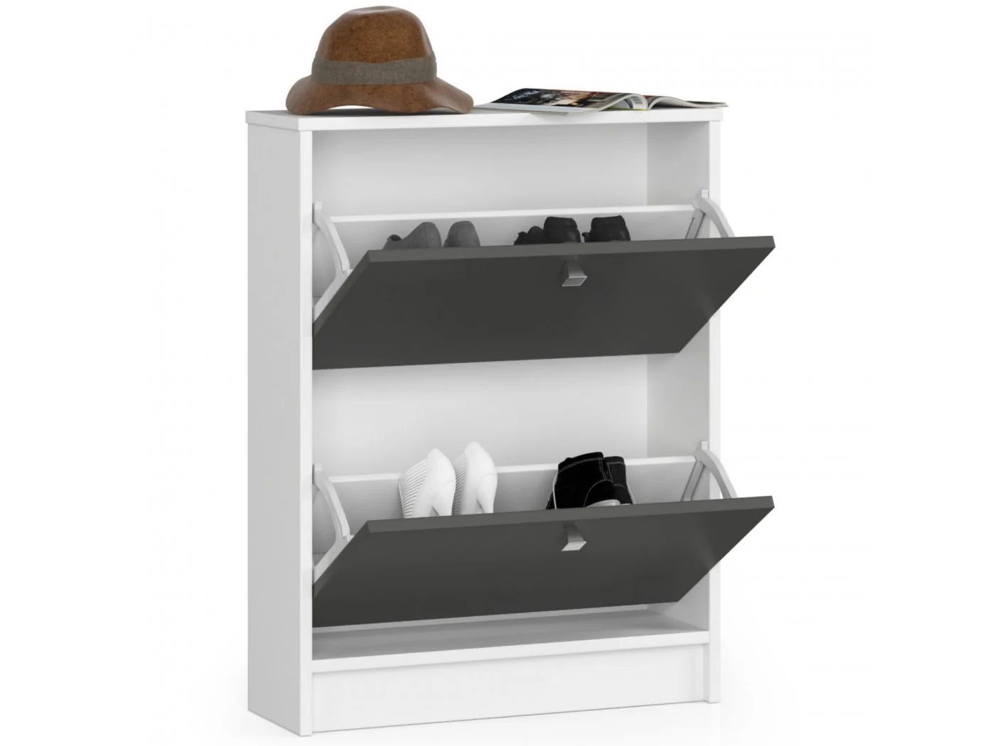 Szafka na buty 2 uchylne drzwiczki 60 cm - biała-grafit szary