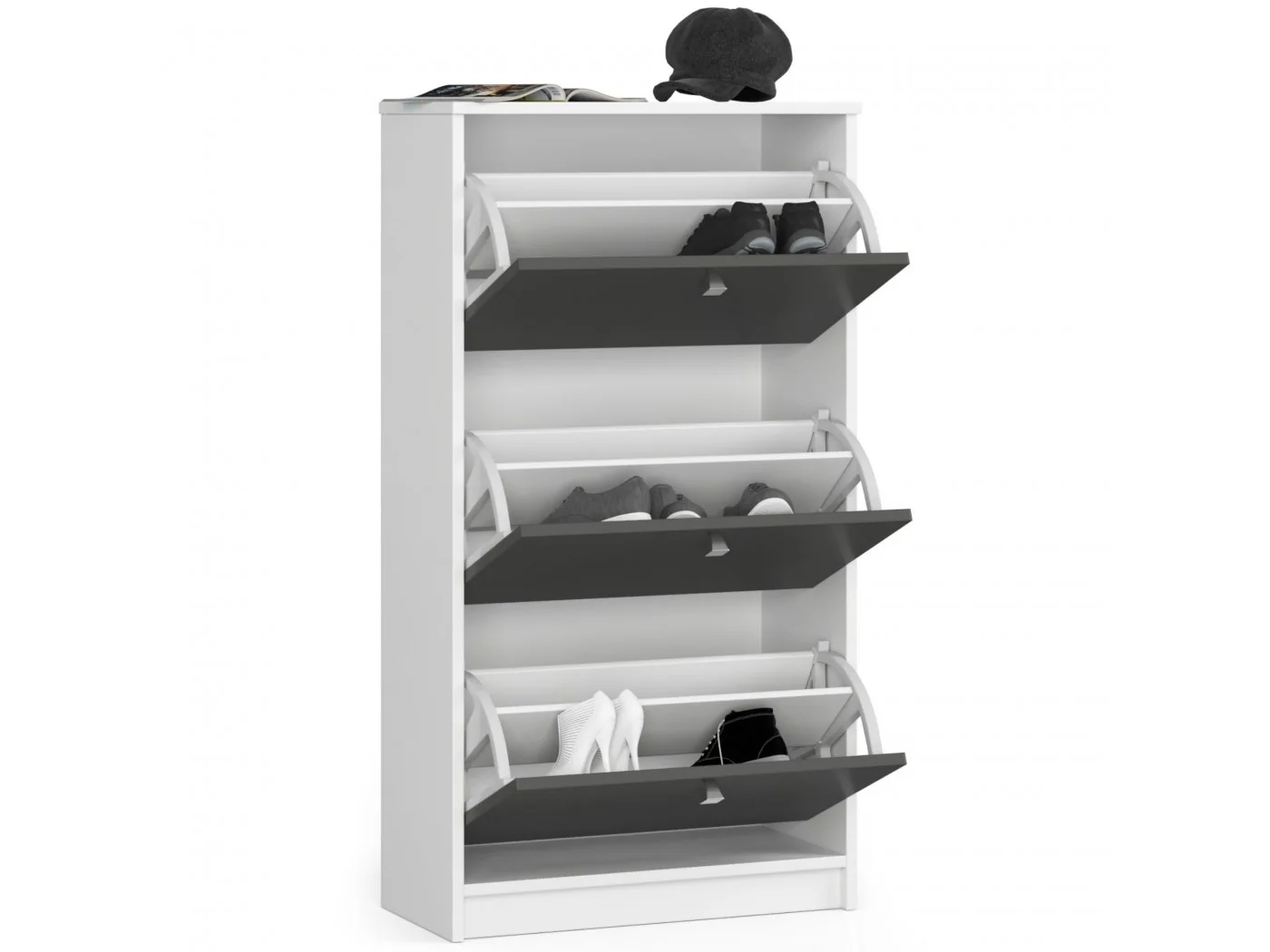 Szafka na buty 3 uchylne drzwiczki 60 cm - biała-grafit szary