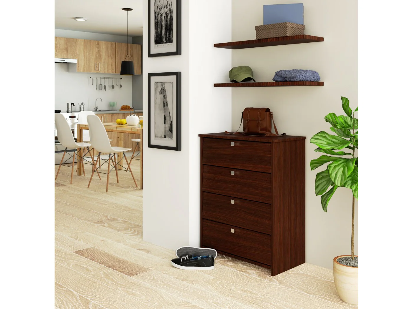 Miłośnikom mebli zaprojektowanych w ciemnej kolorystyce mamy przyjemność zaprezentować efektowną szafkę na buty w kolorze wenge. W naszym sklepie internetowym w tym odcieniu dostępnych jest wiele propozycji, które będą doskonałym uzupełnieniem prezentowanego rozwiązania. Szafka składa się z czterech przestronnych szuflad, które będą w stanie pomieścić kilkanaście par butów. To świetna propozycja, która pozwoli uporządkować obuwie w każdym przedpokoju, jak również dodać pomieszczeniu niepowtarzalnego charakteru. Szafka z powodzeniem może zostać zastosowana również w innych pomieszczeniach, takich jak sypialnie czy garderoby.