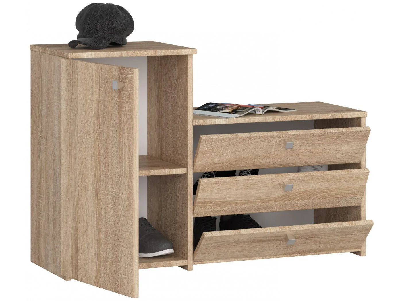 Szafka na buty S16 z komodą 3 uchylne drzwiczki - dąb sonoma