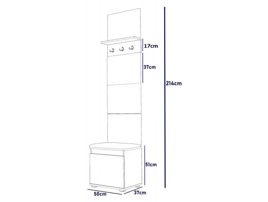 Nevada 50 – kaszmir z wieszakiem i panelami to kompaktowa, stylowa i funkcjonalna szafka na buty. Dzięki wygodnemu siedzisku, pojemnej przestrzeni na obuwie oraz praktycznemu wieszakowi z półką, Twój przedpokój będzie uporządkowany, elegancki i przytulny.