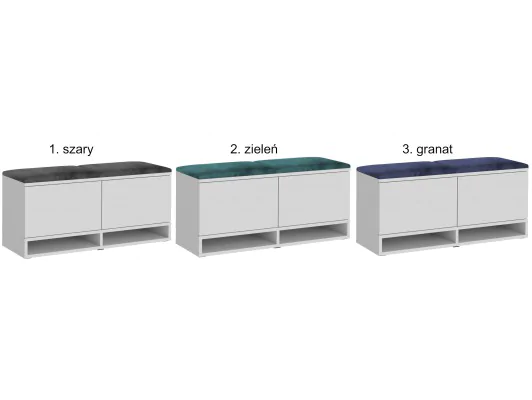 Szafka na buty z siedziskiem biała KANSAS z półką siedzisko szare, granatowe, zieleń butelkowa