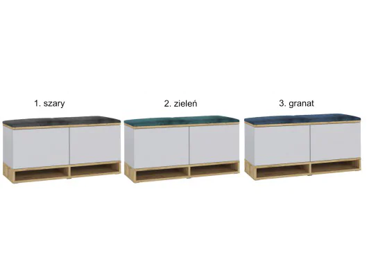 Szafka na buty z siedziskiem biały- craft KANSAS z półką siedzisko szare, granatowe, zieleń butelkowa