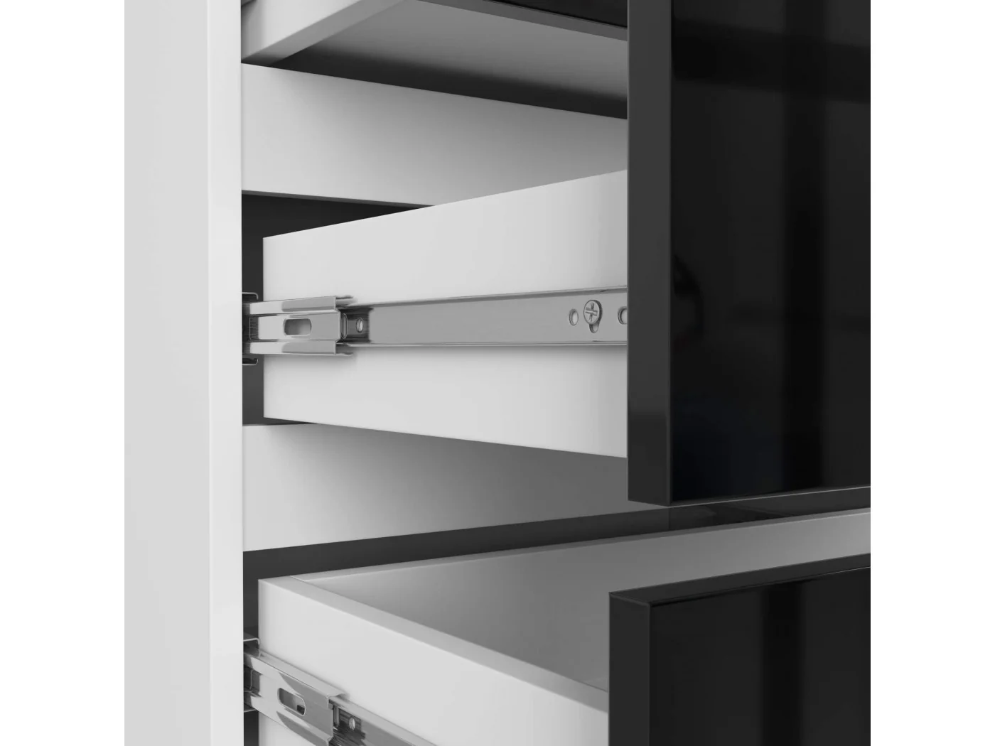 - Szuflady poruszają się na metalowych prowadnicach kulkowych