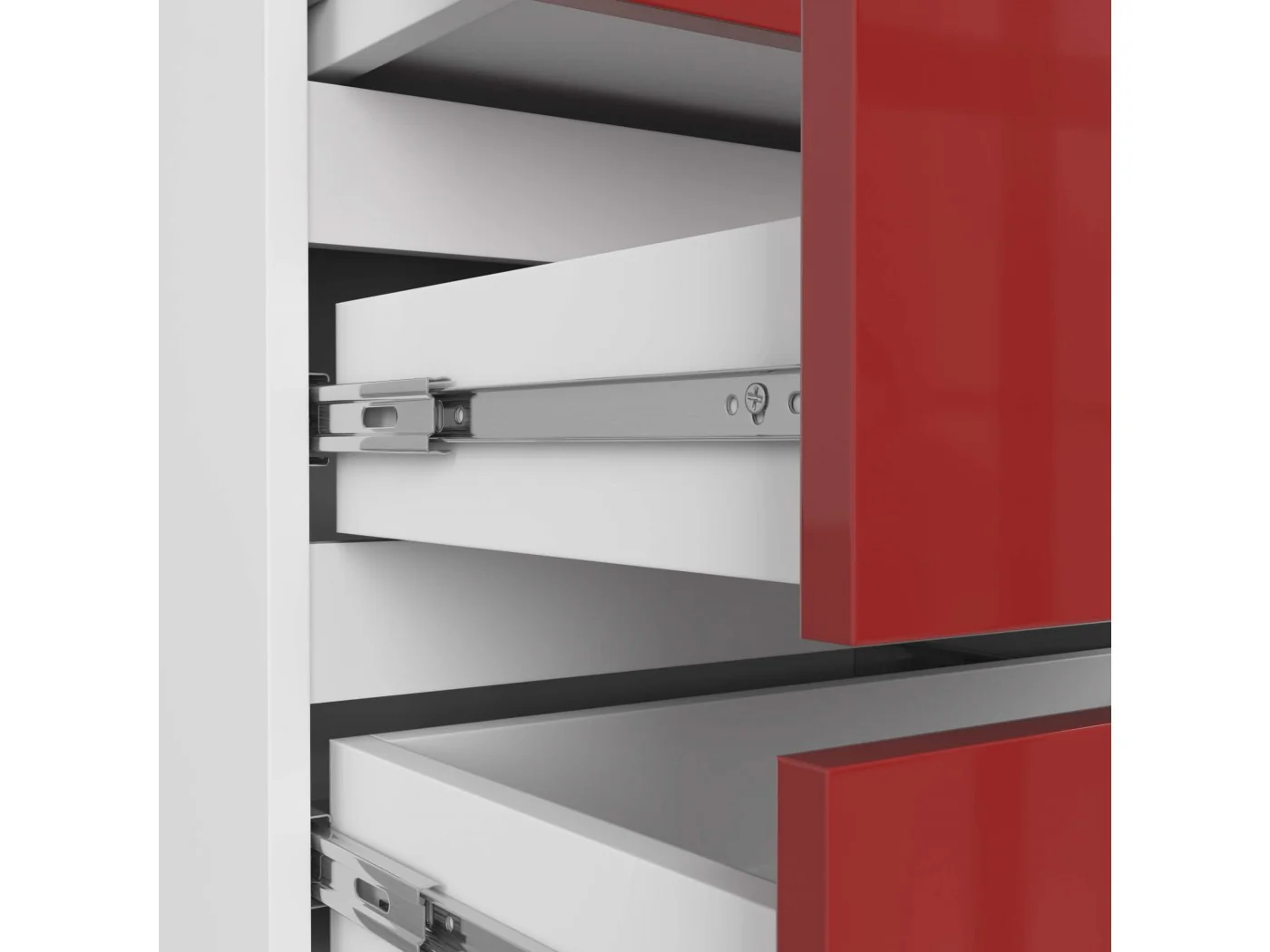 - Szuflady poruszają się na metalowych prowadnicach kulkowych