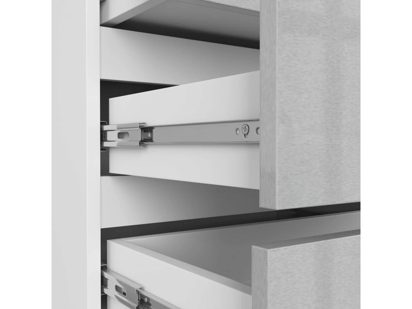 - Szuflady poruszają się na metalowych prowadnicach kulkowych