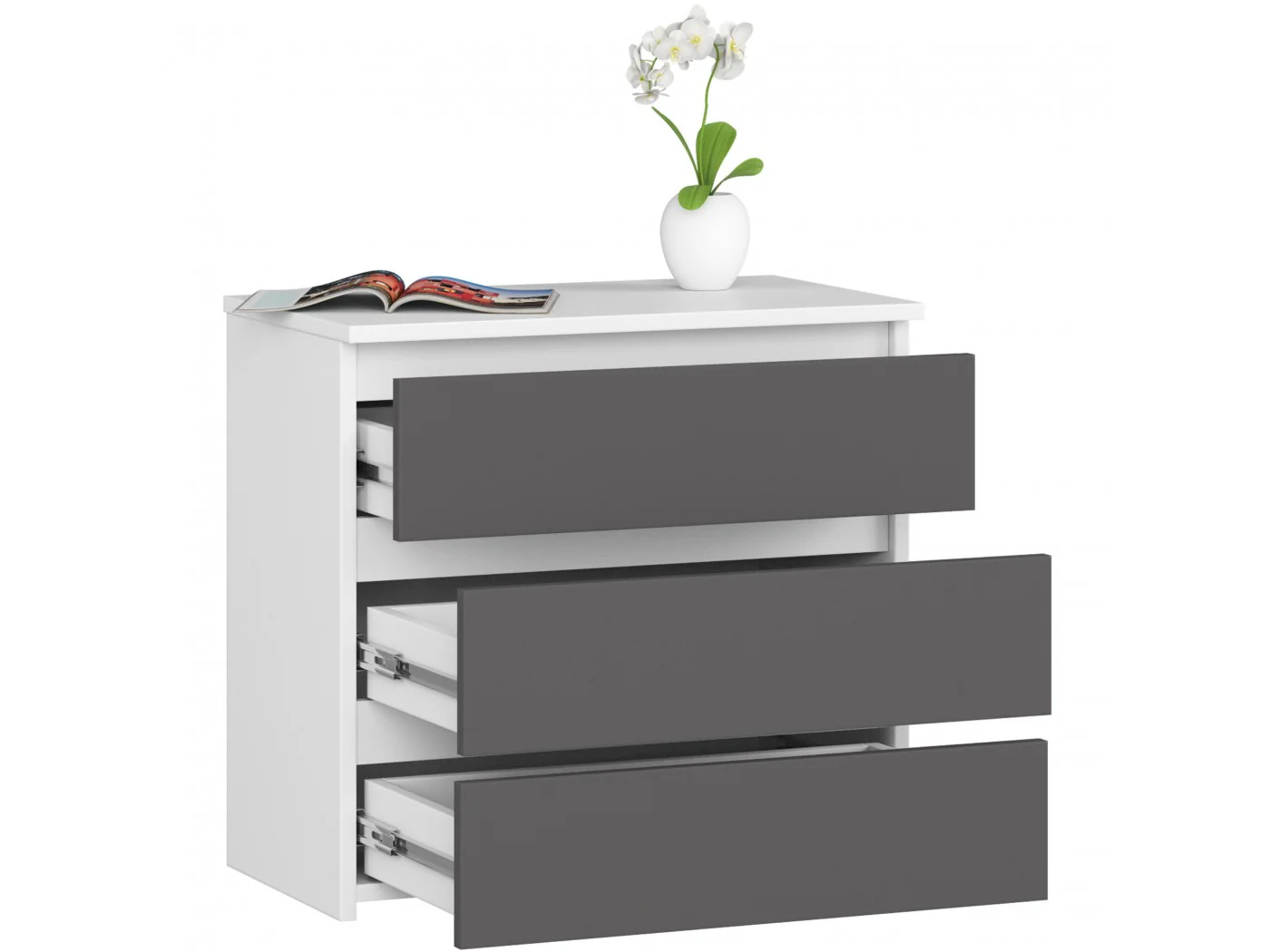 Komoda, szafka nocna, model CL3 to mebel utrzymany w ponadczasowej stylistyce. Szary grafit w połączeniu z bielą to nowoczesne zestawienie, które cieszy się coraz większą popularnością. Mebel może być znakomitym dopełnieniem najmodniejszych trendów wnętrzarskich: aranżacji minimalistycznych, industrialnych i skandynawskich.