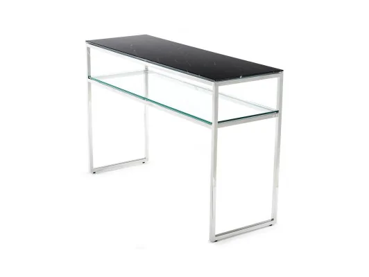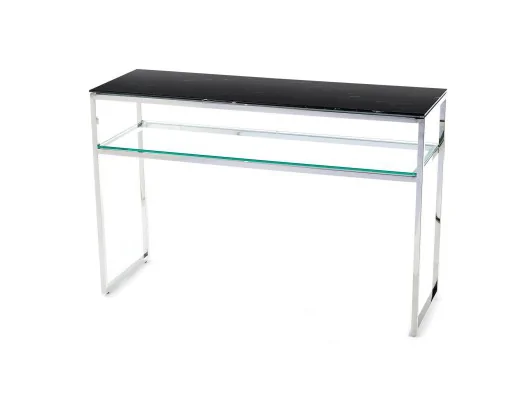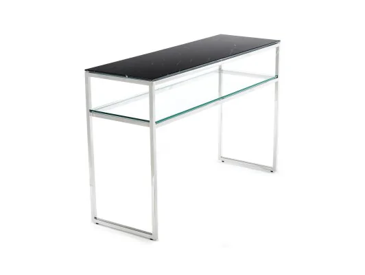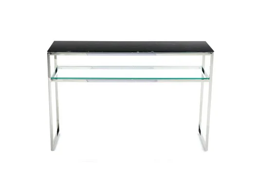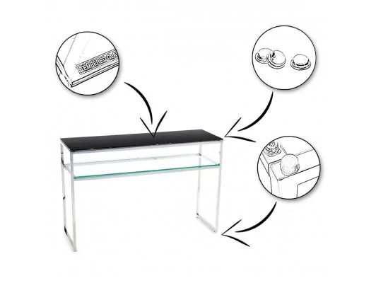 Stelaż wykonany ze stali nierdzewnej w kolorze srebrnym, blaty ze szkła hartowanego.