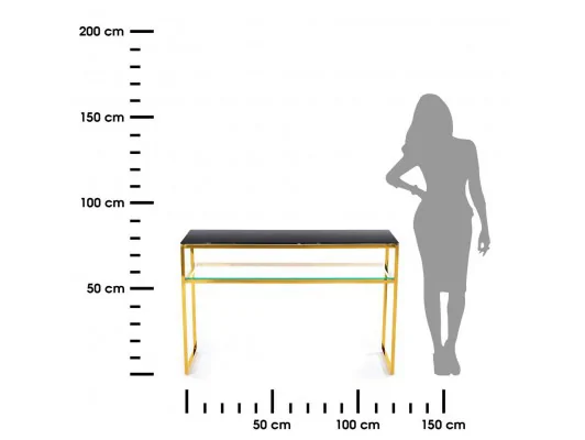 Szklana toaletka z półką Natia Złoto-Czarna 120 cm