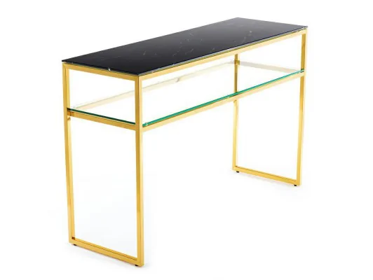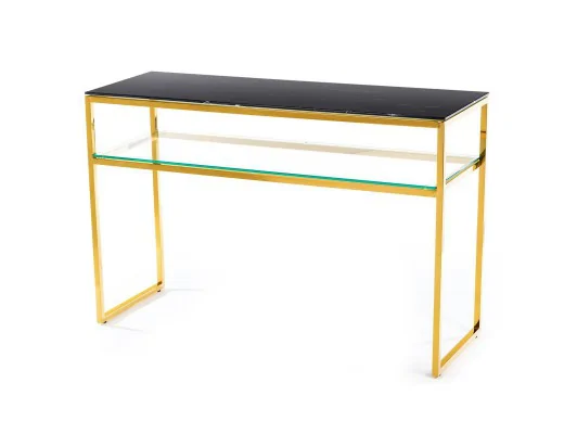 Nowoczesna toaletka kosmetyczna konsola Natia Złoto-Czarna w stylu glamour