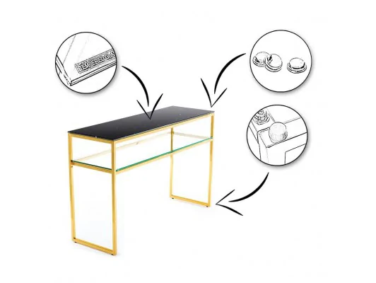 Wykonana ze stali nierdzewnej w kolorze złotym oraz blatu z hartowanego szkła.