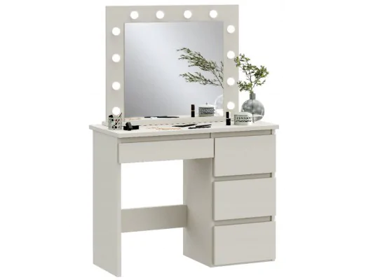 Nowoczesna toaletka Beta z lustrem i oświetleniem 12 LED FLAT – funkcjonalny mebel kosmetyczny kaszmir
