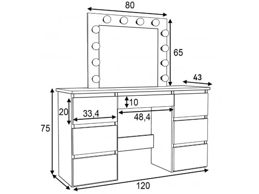 ✅ Duży blat 120 cm – swoboda organizacji przestrzeni na kosmetyki, biżuterię i akcesoria.