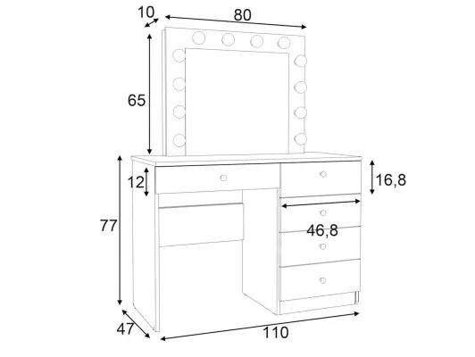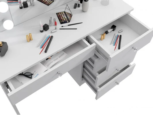 Posiada 5 pojemnych szuflad, które pomieszczą wiele niezbędnych akcesoriów do makijażu i codziennej pielęgnacji.