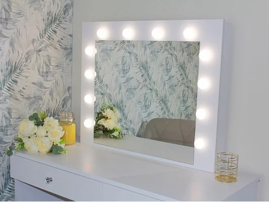 Na lustrze znajduje się 12 żarówek LED o barwie neutralnej, idealnej do wykonywania perfekcyjnego makijażu.