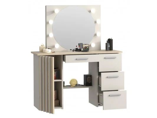 Poznaj toaletkę Montana z okrągłym lustrem LED 8 punktów, która łączy elegancję, funkcjonalność i komfort codziennej pielęgnacji. Ten nowoczesny mebel w kolorze kaszmir z frontami w odcieniu dąb cremona cotto został zaprojektowany tak, aby stać się stylową ozdobą sypialni, garderoby lub pokoju młodzieżowego, a jednocześnie zapewniać maksymalną wygodę podczas wykonywania makijażu i codziennej pielęgnacji.