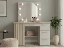 Toaletka Montana z okrągłym lustrem LED 8 punktów – kaszmir + dąb cremona, nowoczesna i pojemna