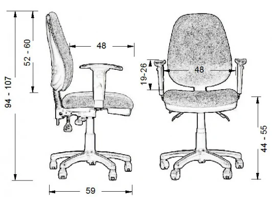 Posiada regulację kąta odchylenia oparcia oraz siedziska.