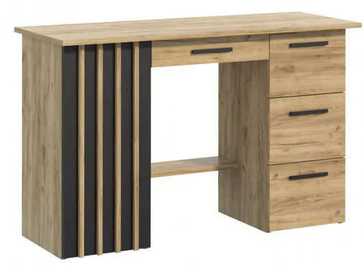 Zestaw mebli młodzieżowych MONTANA z lamelami – funkcjonalne biurko, pojemna komoda, regał i szafa dąb craft+ czarny