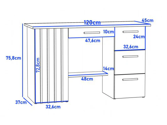 Dzięki przemyślanej konstrukcji i kompaktowym wymiarom, zestaw sprawdzi się nawet w niewielkich wnętrzach. To gotowy komplet do nauki, przechowywania i organizacji codziennych rzeczy.