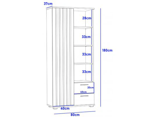 • Drążek na wieszaki + półki + 2 głębokie szuflady (40 cm)