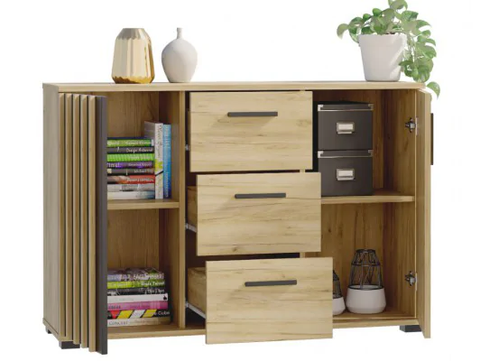 • Połączenie otwartych półek, zamykanej szafki i 2 szuflad