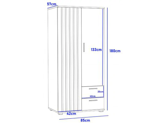 • Drążek na wieszaki + półki + 2 szuflady (głęb. 40 cm)