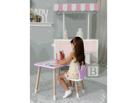 Zestaw dziecięcy: prostokątny stolik i krzesełko w kształcie korony – idealny do zabawy i nauki!